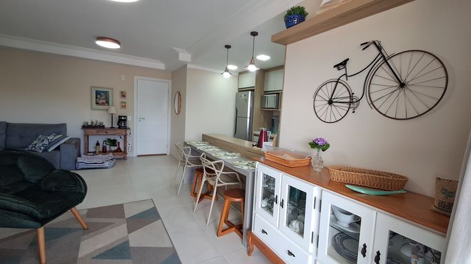 • Todo o mobiliário incluso, exceto: bistrô da varanda, um dos criados-mudos dos quartos, duas banquetas de madeira da sala, peças de uso pessoal e itens de decoração