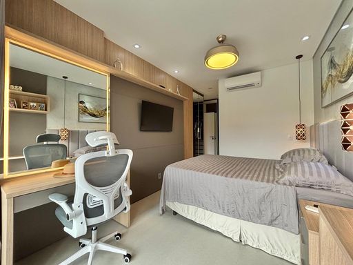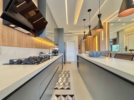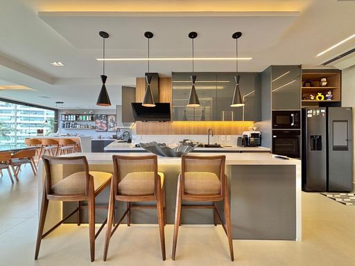 • Sala com três ambientes integrados (jantar, estar e TV)