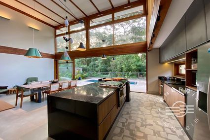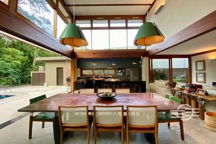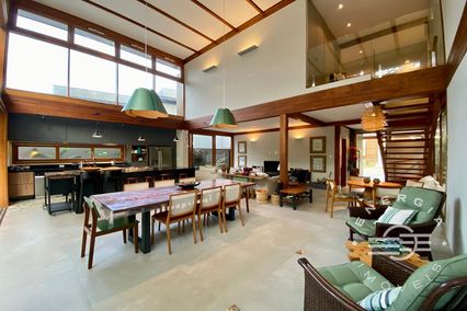 Ambientes amplos e integrados com pé direito duplo, trazendo leveza e sofisticação: