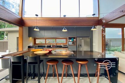 • Cozinha com ilha e eletros embutidos (fogão 5 bocas, micro-ondas, geladeira com dispenser, lava-louças e cervejeira)