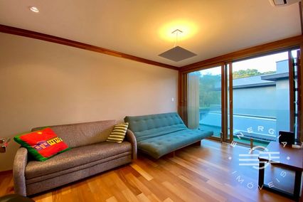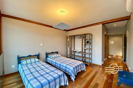 • Piso térreo em porcelanato acetinado e piso superior em madeira nobre