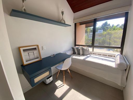 Este Village está mobiliado e decorado, com ambientes bem distribuídos e excelente estado de conservação. Possui dois dormitórios no andar superior, sendo uma suíte, além de um espaço adicional que pode ser facilmente convertido em um terceiro dormitório. Os quartos contam com uma agradável vista para a área verde. No pavimento térreo há um lavabo, que originalmente era um banheiro completo, podendo ser revertido novamente conforme a necessidade. O condomínio é arborizado, bem iluminado e oferece um ambiente acolhedor e tranquilo.